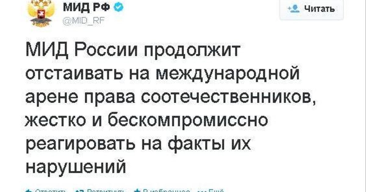 Россия продолжит отстаивать на международной арене права соотечественников, жестко и бескомпромиссно реагировать на факты их нарушений.