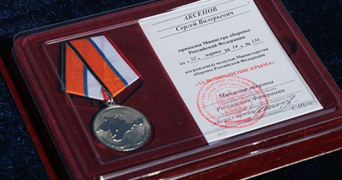 Первым медаль получил самопровозглашенный премьер-министр Крыма Сергей Аксенов. Также получили медали командование Черноморского флота РФ, российские морпехи и изменившие присяге бывшие бойцы спецподразделения "Беркут".