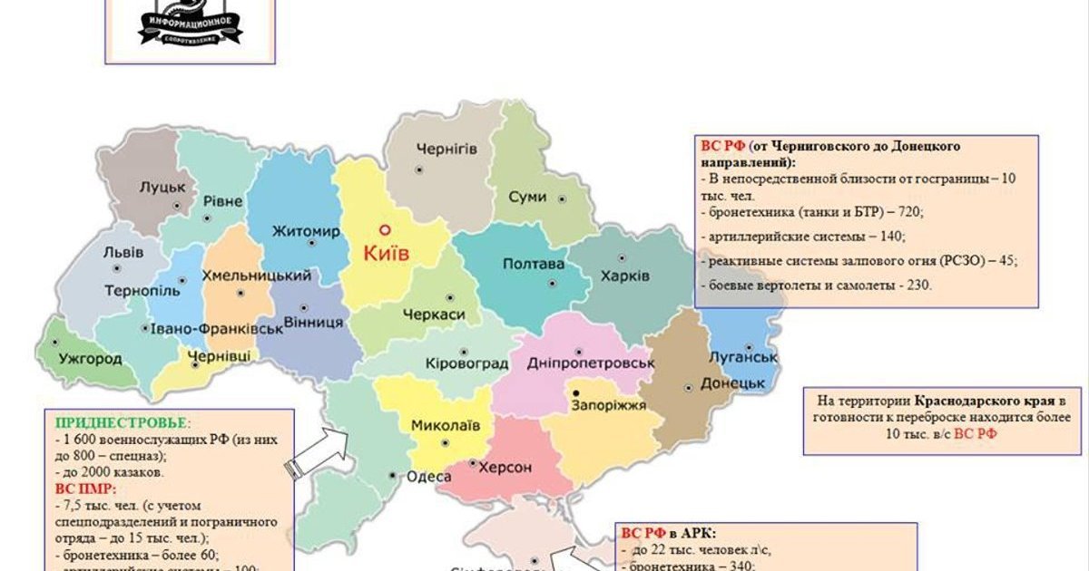 На данный момент, по данным Тымчука, близ границы с северо-востока до юго-востока Украины (на всех приграничных территориях) сосредоточено следующее количество вооружения и военной техники (в скобках указано их количество на 24 марта):