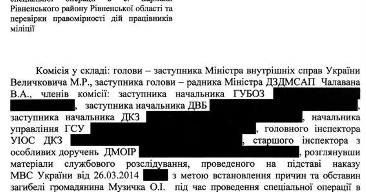 Учитывая это, комиссия рекомендовала закончить служебное расследование причин и обстоятельств гибели Музычко во время проведения специальной операции в городе Ровно и проверки правомерности действий работников милиции. Сведения, которые стали основанием для проведения служебного расследования, считать не подтвердившимися в части неправомерности действий работников милиции.