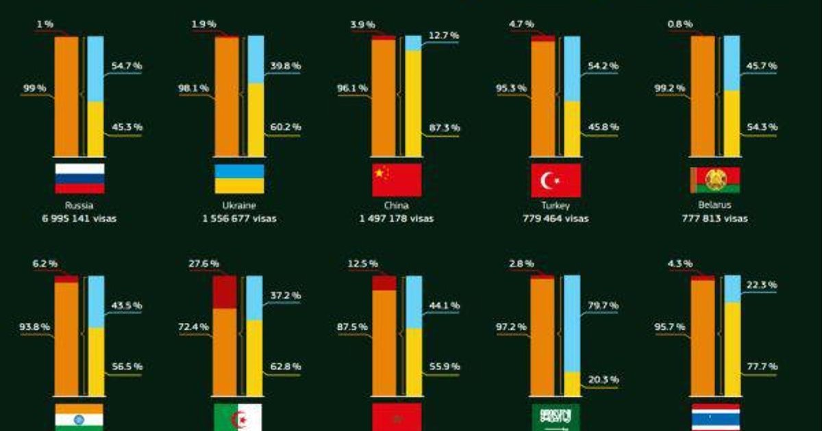 Украина вторая по количеству заявлений на получение шенгенской визы.ИНФОГРАФИКА
