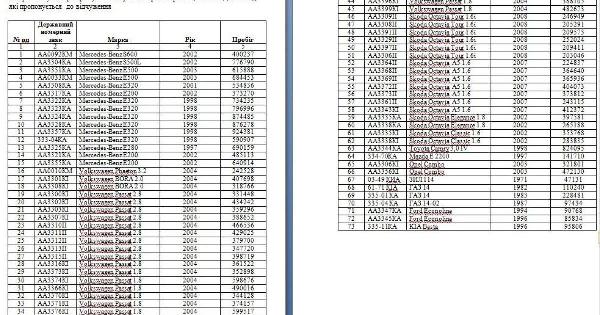 Кабмин обнародовал список всех авто, выставленных на продажу