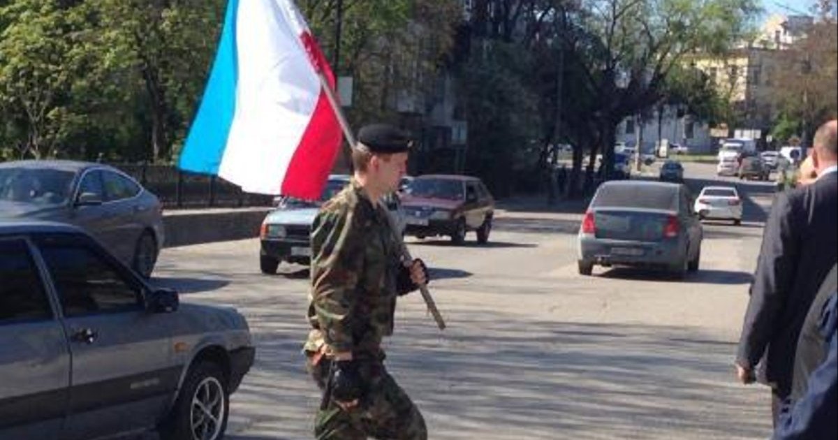 Pazartesi günü , 21 Nisan . Kendini - savunma birimleri olarak kendilerini işaretlenmiş üniformalı kimliği belirsiz erkek , zorla SimferopolMerkez Meclisi binaya girdi ve cephe ile Ukrayna'nın ulusal bayrağı bozulur . Binada o dönemde kuvvet yaralı çalışanların bir sonucu olarak . Şu anda Ukrayna bayrağı tekrar Milli Meclisibinasının üzerinden kaldırdı . Bina alternatif Kırım Tatar eylemciler yakın ! "