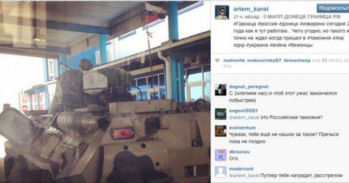 "Очень быстро после комментариев друзей типа: "Путлер тебя наградит, расстрел", "Чувак, тебя еще НЕ нашли за такое? Прячься пока не поздно", Артем закрыл свой профиль в Инстаграм от посетителей. Поэтому сейчас остались только скриншоты. Не подумайте, что Артем - русский диссидент. Судя по его фотографиям и комментариев, он совсем не против путинского режима. Спасибо, Артем, за фотосвидетельства. Не то что бы мы не знали, что эти вещи происходят, но всегда лучше увидеть, каким образом российская техника пересекает границу, чем услышать.", - пишет блоггер. Ранее Цензор.НЕТ сообщал, что ночью из России въехало около 100 единиц военной техники. Авиация нанесла удар.