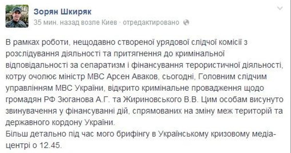 МВД Украины возбудило уголовное дело против Зюганова и Жириновского, - Шкиряк