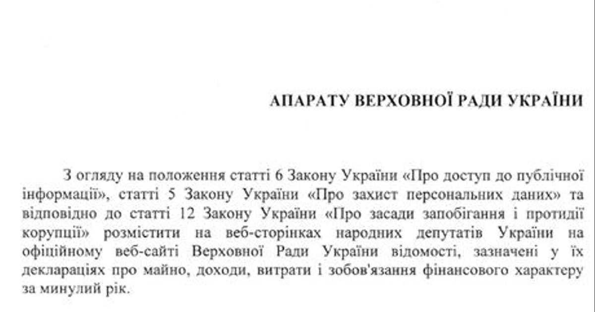 По словам руководителя парламента, он неоднократно обращался к народным депутатам с "поручением самостоятельно обнародовать их декларации".