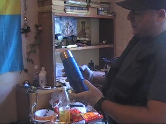 "При проведении санкционированного обыска, по месту жительства подозреваемого было обнаружено и изъято два обреза охотничьего ружья, предмет похожий на самодельное взрывное устройство, большое количество пороха и поражающих элементов, разнообразные пистолеты и револьверы, большое количество патронов различного калибра, балаклавы, камуфлированная одежда, разнообразное холодное оружие, - рассказал начальник ГУМВД Иван Катеринчук. - Среди прочего задержанный сохранял топографическую карту Одесского порта с метками, 2 карты-разреза, с отметками несущих стен и каркаса, расположенной в Одессе Немецкой Евангелической-Лютеранской церкви".