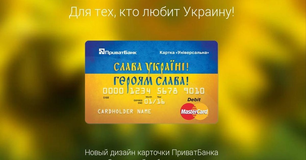 "Наши самые популярные карты "Универсальная" теперь имеют новый, патриотичный дизайн, и мы уверены, что эти карты понравятся миллионам наших клиентов, которые любят Украину, - отмечает первый заместитель председателя правления ПриватБанка Олег Гороховский. - Мы надеемся, что оформление такой карты станет своеобразным флеш-мобом в поддержку независимости и территориальной целостности нашей страны", - говорит Гороховский, сообщает Цензор.НЕТ со ссылкой на пресслужбу ПриватБанка.