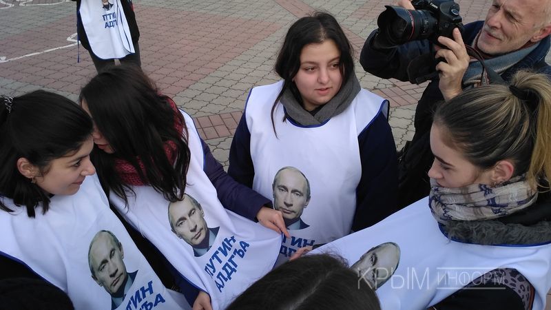 17 февраля близкое к российским властям Крыма издание "Крыминформ" сообщило, что "крымская молодежь провела флешмоб в поддержку президента России". Несколько десятков человек выстроились в слова "Путин алдгъа" на центральной площади Симферополя.