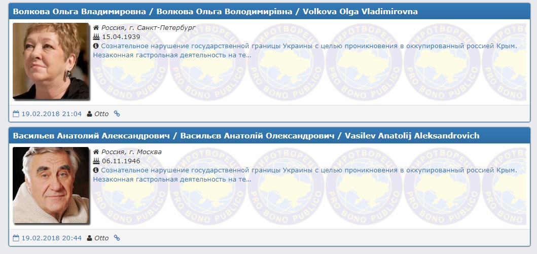 "Миротворец" внес в базу еще пятерых российских актеров