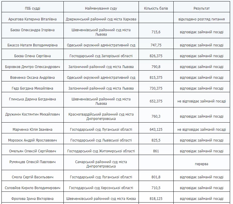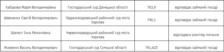 2 августа 2018 на заседаниях коллегий Высшей квалификационной комиссии судей Украины проводились собеседования и определялись результаты квалификационного оценивания 20 судей местных судов на соответствие занимаемой должности.