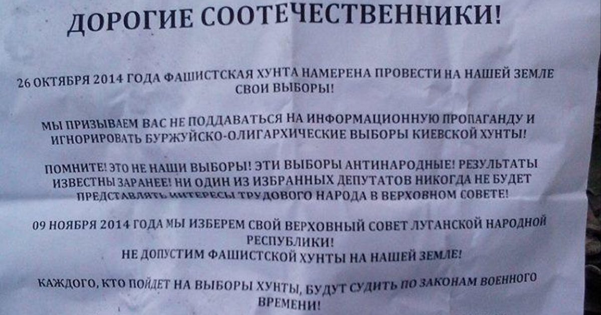 Как сообщает Цензор.НЕТ, распечатки с таким содержанием распространялись в Луганске.