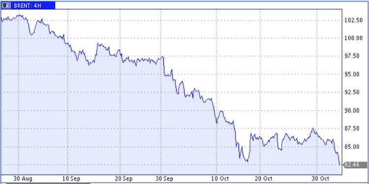 По состоянию на 14:34 по киевскому времени нефть марки Brent на Лондонской бирже ICE уже подешевела до $82.37/барр