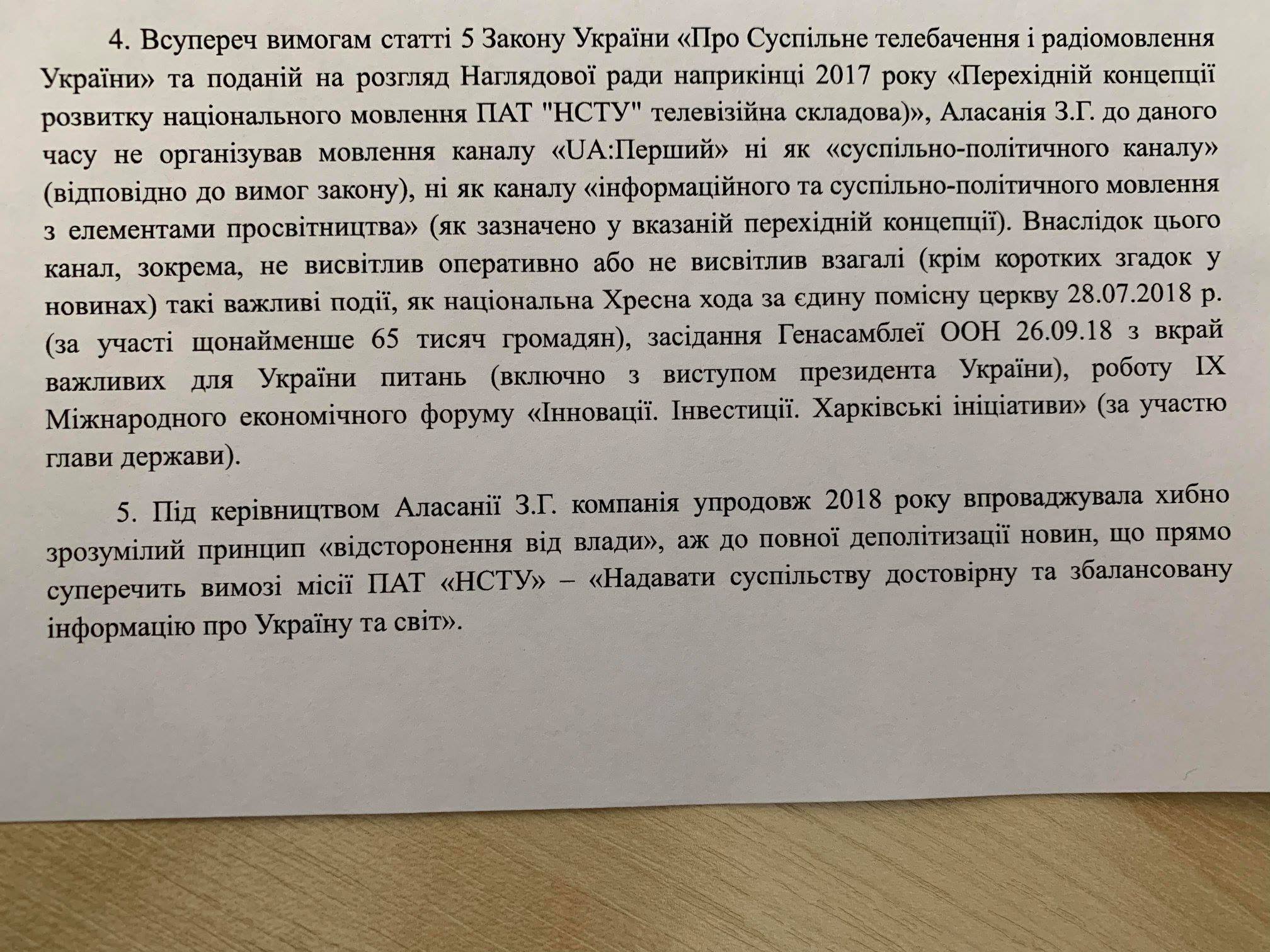 Деполитизация новостей и скудное запоздалое освещение важных событий: Аласания показал фрагмент проекта решения по его увольнению. ФОТО