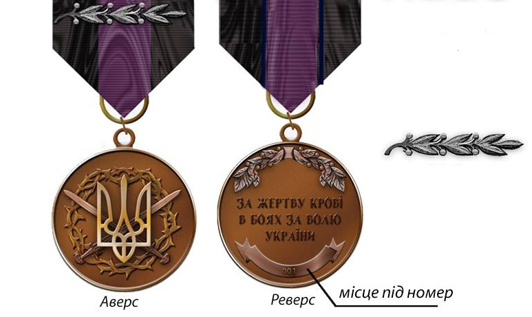 Количество ранений и степени их тяжести будут определяться веточками, крепящимися на ленте медали и планке. Легкие ранения будут обозначены белой или серебряной ветвью. Тяжелые – золотой или желтой.