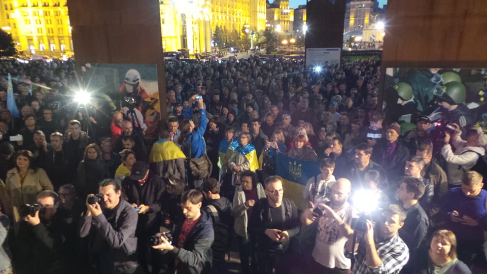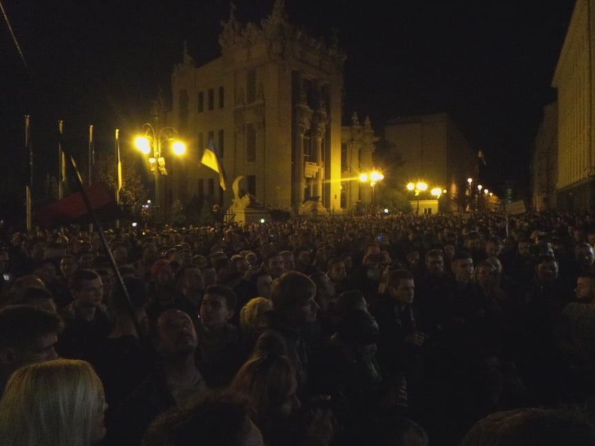 Вечером 2 октября на главной площади Киева собрались тысячи человек выразить свой протест решению президента В.Зеленскго, который согласился применить на Донбассе "формулу Штайнмайера".