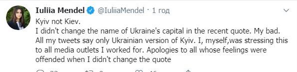 Мендель извинилась за то, что написала "Kiev" вместо "Kyiv"