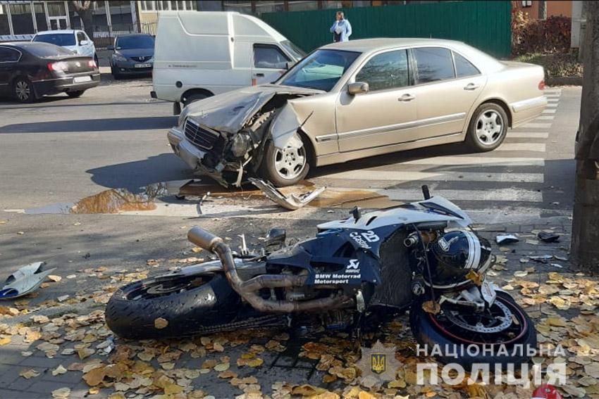"передає Depo.Хмельницький: Як повідомили нам очевидці події, ДТП сталася на зупинці громадського транспорту "Водопровідна". Свідки аварії кажуть - (11-тирічна) дівчинка дочекалася зеленого сигналу світлофора і почала переходити по пішохідному переходу. Несподівано зявився мотоцикл, який протаранив "Мерседеса", що пропускав дівчинку на переході. Некерована автівка внаслідок удару почала рухатися і вдарила дитину, яка, своєю чергою відлетіла і вдарилася об стовп."