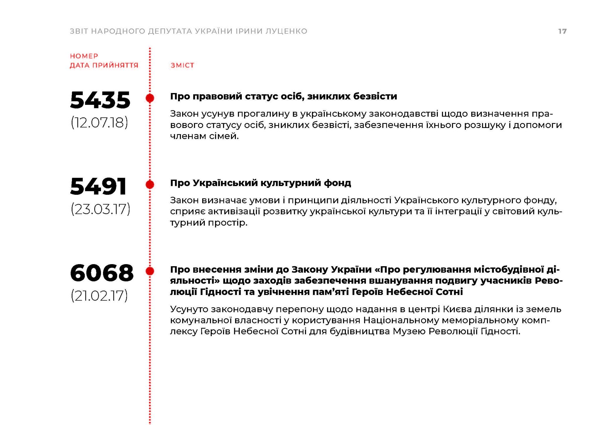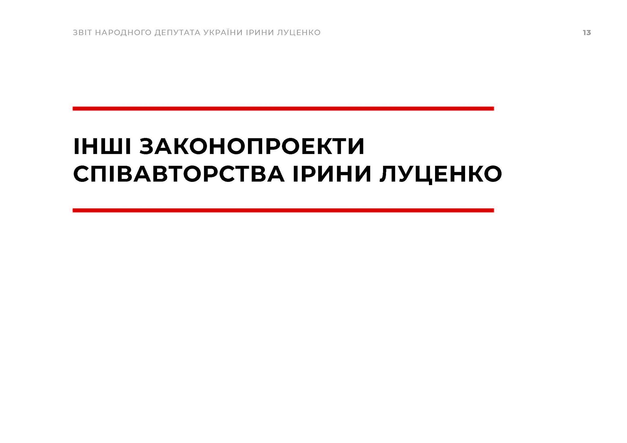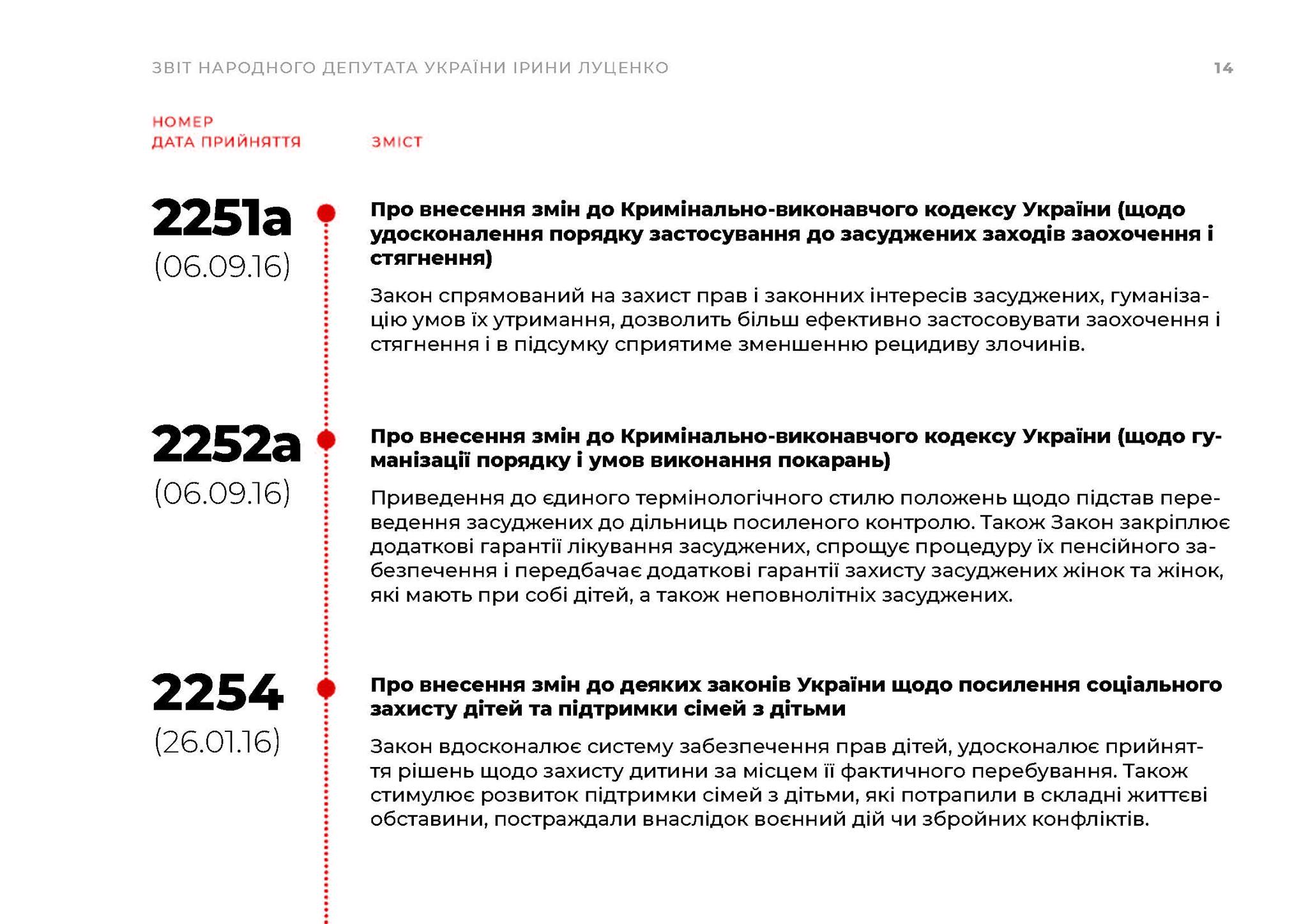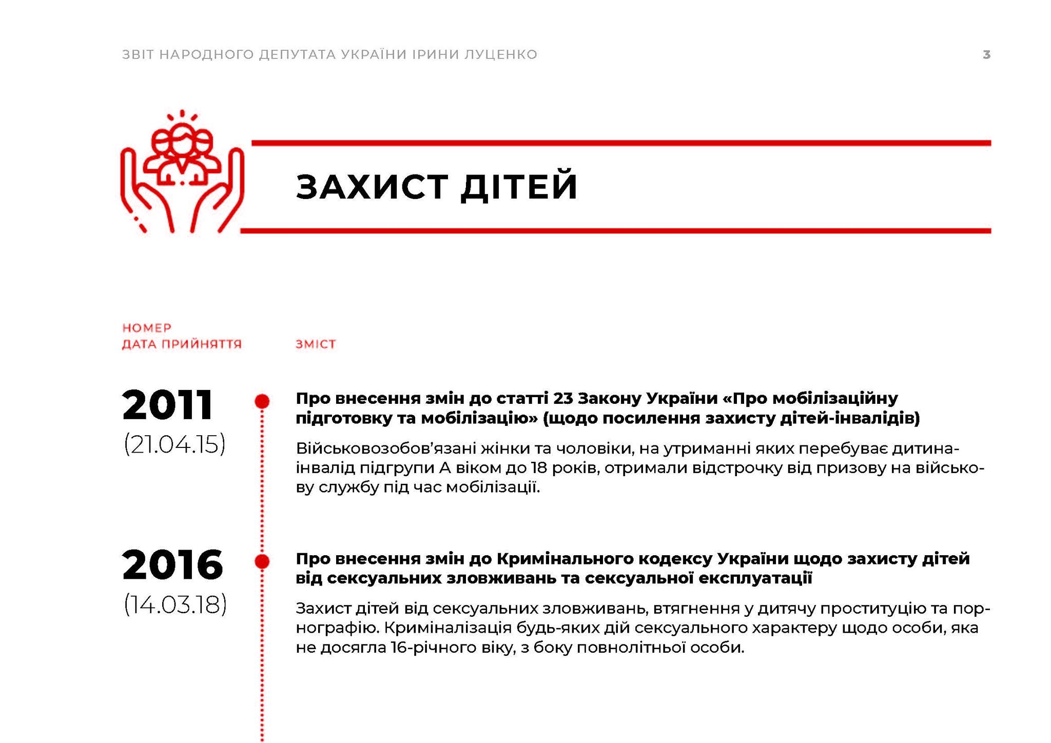 "Я всегда рассматривала депутатский мандат как большую ответственность и возможность приобщиться к развитию страны. Своей основной миссией видела защиту детей и украинских семей, борьбу с домашним насилием, защиту прав человека. Впервые в украинском законодательстве появилось такое понятие, как домашнее насилие. Впервые оно признано уголовным преступлением. Впервые родители, которые забыли о существовании собственных детей, выплатили в их пользу более 8 млрд гривен алиментов. Созданное мною МФО "Чужих детей не бывает" объединило десятки депутатов с одной целью - создать условия для безопасного и всестороннего развития ребенка. Вместе нам удалось принять много важных законов. Приоритетом моей работы в качестве народного депутата также была защита государственного суверенитета Украины. Впервые был запрещен доступ на выборы наблюдателям государства-агрессора. Впервые незаконное пересечение государственной границы Украины признано уголовным преступлением. Впервые в Конституции Украины закреплен курс евроатлантической интеграции, наше стремление приобрести полноправное членство в ЕС и НАТО. Это лишь основное из того, что успела сделать", - рассказала Луценко.