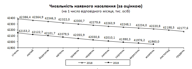 Численность имеющегося населения в Украине на 1 октября 2019 года составляла 41 млн 960 тыс. человек.