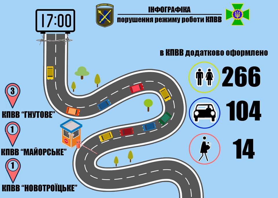 "Пограничниками из состава Объединенных сил организованы мероприятия по дополнительному оформлению 266 граждан, в том числе 14 детей, и их пропуску через линию разграничения", - отметили в штабе.