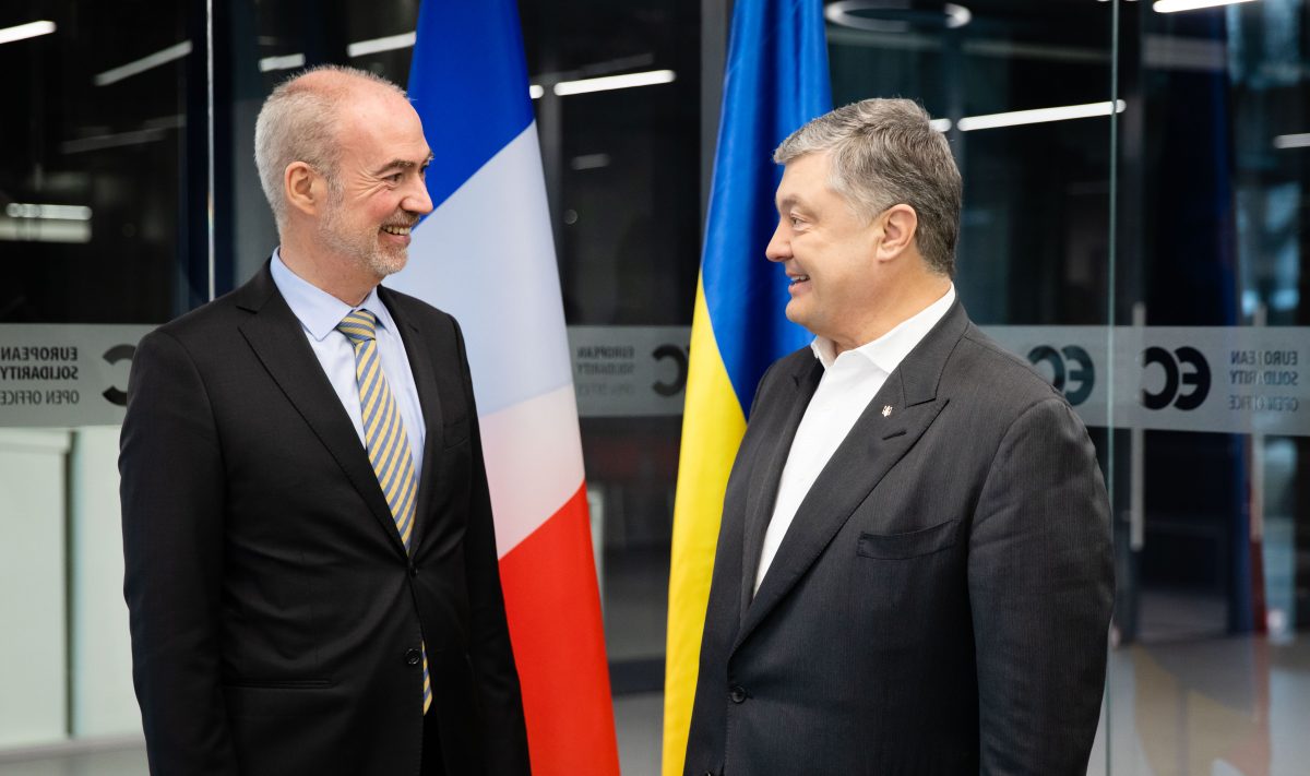 Пятый Президент Украины, лидер политической партии "Европейская Солидарность" Петр Порошенко встретился с Чрезвычайным и Полномочным Послом Французской Республики в Украине Этьеном де Понсеном.