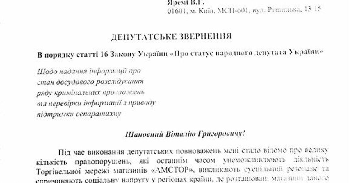 В частности, отмечают депутаты, по общедоступной информации, наличность магазинов сети, которые находятся на территории Донецкой области, в настоящее время не инкассируется и не поступает на счета ООО "Амстор Трейд", а, соответственно, в государственный бюджет Украины не уплачиваются налоги.
