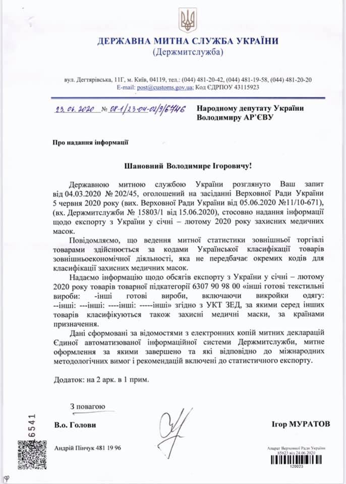 Как передает Цензор.НЕТ , об этом говорится в ответе ведомства на запрос народного депутата от "Европейской солидарности" Владимира Арьева, который тот опубликовал в Фейсбуке.