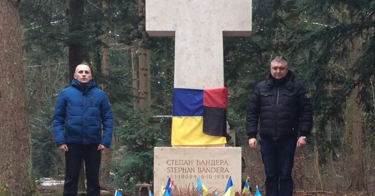 Я и Oleg Panas посетили памятник Степану Бандере в Мюнхене. Кроме двух грузовиков гуманитарного груза из Германии привезем нашим ребятам, которые воюют на Востоке Украины землю с могилы Стапана Бандеры, чтобы эта земля вдохновляла на ПОБЕДУ! Могила диаспорой и консулом Украины в Мюнхене - восстановлена", - отметил волонтер.