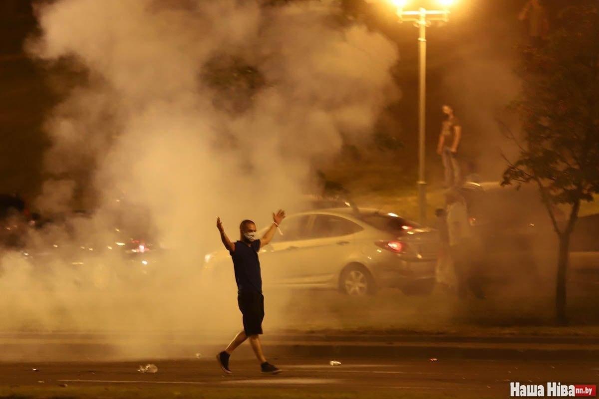 До этого силовики оттеснили большую часть протестующих с проспекта Машерова.