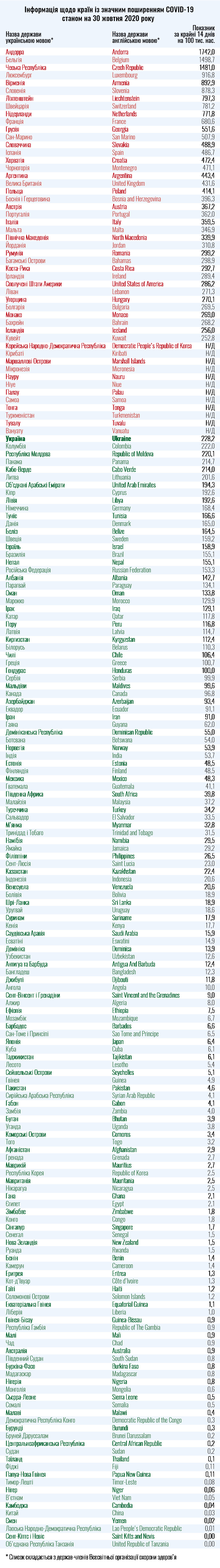 Министерство здравоохранения Украины обновило перечень стран, которые по количеству активных случаев COVID-19 на 100 тыс. населения отнесены к "зеленой" и "красной" зонам.