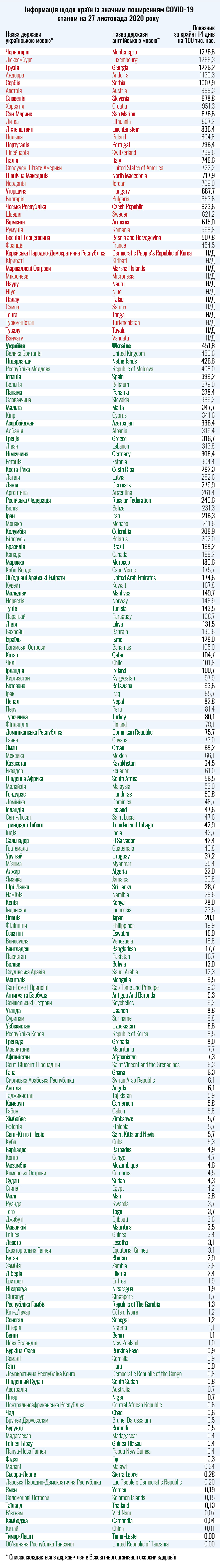 Министерство здравоохранения Украины обновило перечень стран, которые по количеству активных случаев COVID-19 на 100 тыс. населения отнесены к "зеленой" и "красной" зонам.
