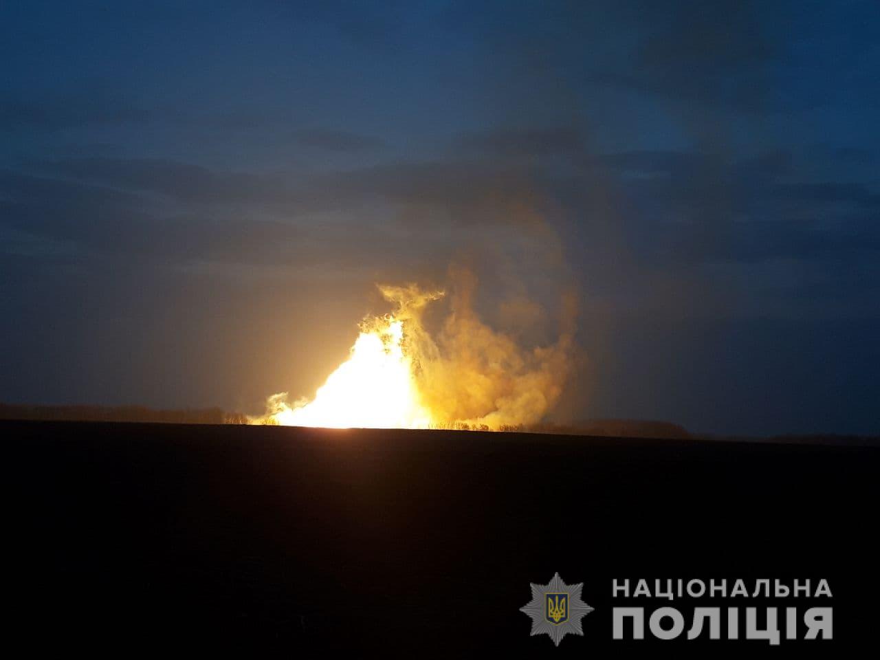 Полиция устанавливает причины взрыва на магистральном газопроводе под Лубнами. Периметр пожара охраняется
