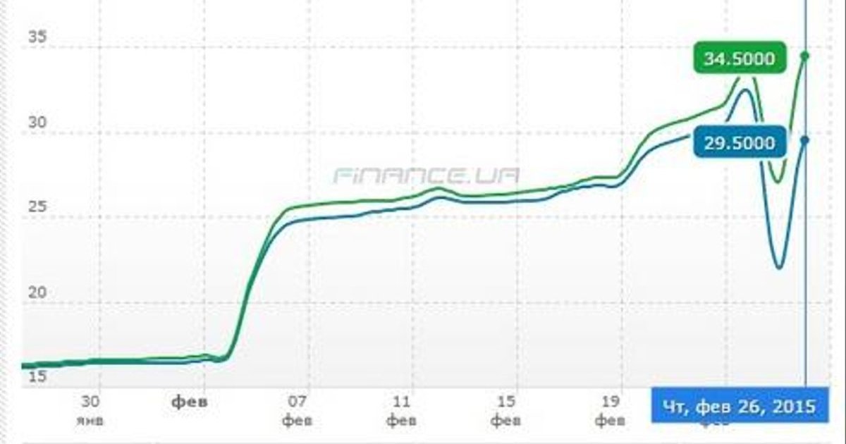 Сегодня, 26 февраля, украинский межбанковский рынок открылся в диапазоне 29,5-34,5 грн за доллар.
