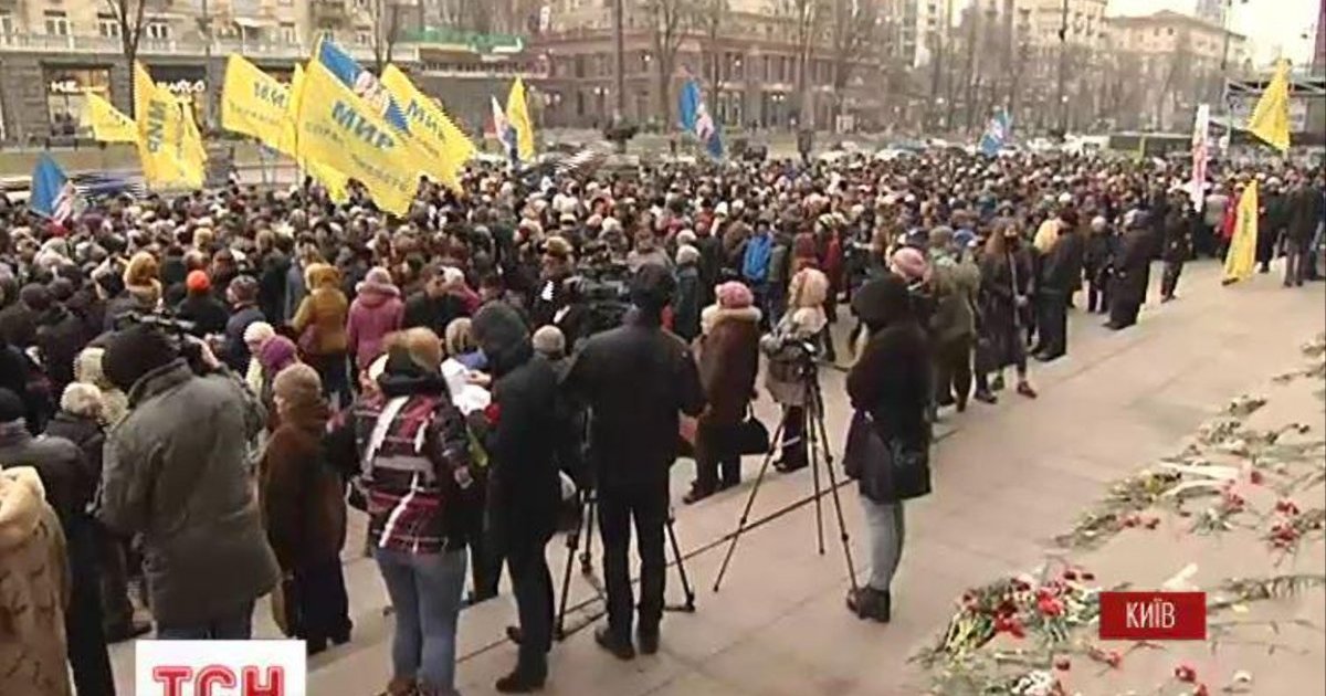 Участники акции принесли белые платки для мэра Киева Виталия Кличко. Митингуют люди фактически против всего.