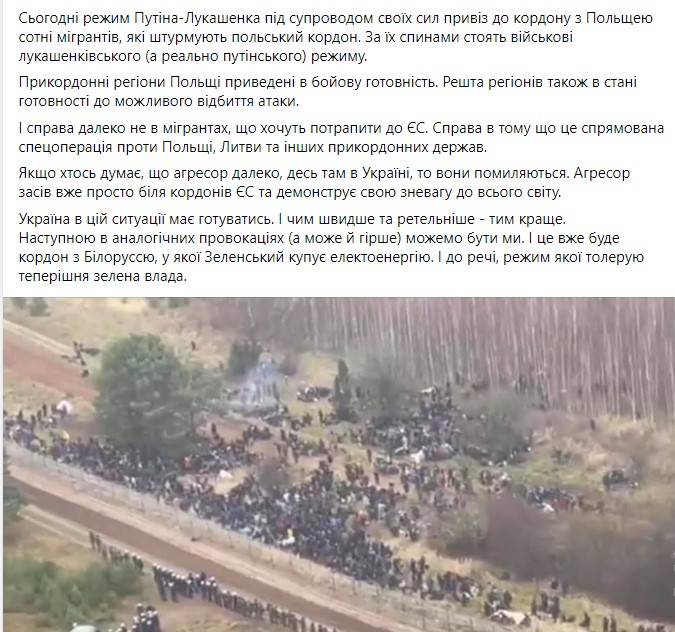 в том, что творит Лукашенко на границе с ЕС, меня пугает. Пугает потому, что , если Польша и страны Балтии устоят и будут жесткими вплоть до применения оружия, этот таракан может переправить накопившихся беженцев к украинской границе. А у нас зеленый лох и агенты ФСБ у власти