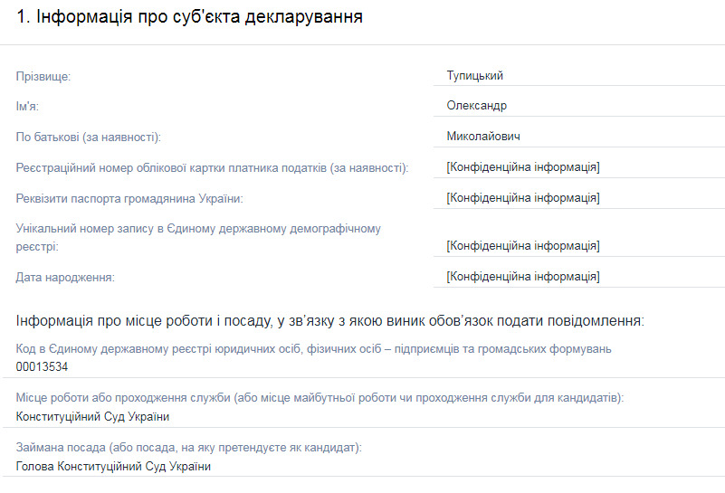 В частности, Тупицкий в своей декларации указал, что 30 декабря он получил 903,984 грн заработной платы по основному месту работы. Выплату произвел Конституционный Суд.
