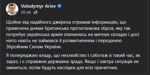 Об этом сообщает Цензор.НЕТ со ссылкой на Укринформ.