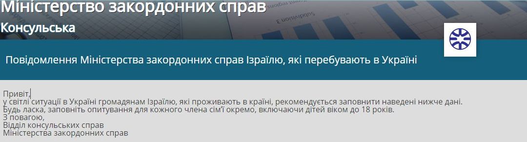 Израильтян, проживающих в Украине, просят заполнить анкету "в свете сложившейся ситуации"