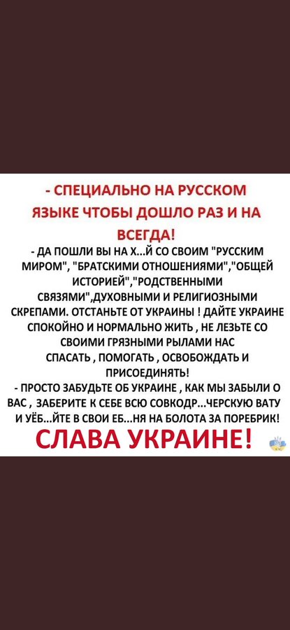 ОТСТАНЬТЕ ОТ НАШЕЙ СТРАНЫ. НИКТО! ДАЖЕ САМЫЕ РУССКОЯЗЫЧНЫЕ, поверьте, Вас не ждёт!!!!