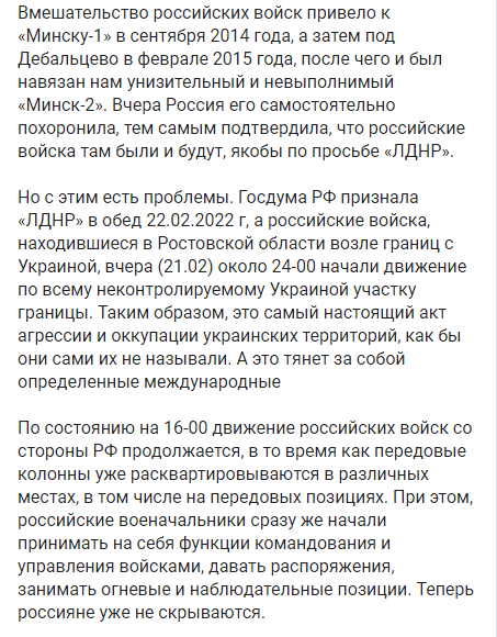 Вольнодумец Призываю всех к спокойствию и собранности Вчера случилось то,что случилось давно,еще в августе 2014 года Когда Россия ввела под Иловайск свои регулярные войска Но все время врала, что «ихтамнет» Это предопределило все дальнейшие события