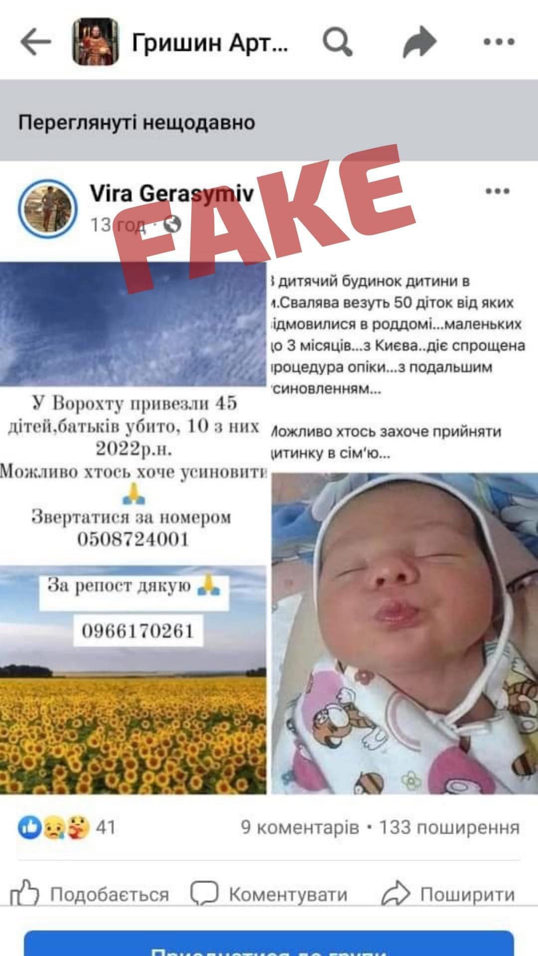 Она уточнила, что на днях пользователи соцсетей активно распространяли информацию с призывом усыновить 45 маленьких детей из регионов активных боевых действий, родители которых якобы были убиты.