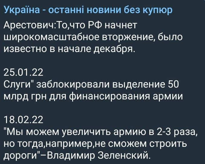 При этом, когда один из офицеров спросил, где, мол, гарантия, что после компромисса Украины, Россия не атакует Украину вновь, но уже намного лучше подготовленная, Арахамия эмоционально и безапелляционно посоветовал боевому офицеру «поменьше читать вранье порохоботов». Четкого ответа на вопрос он так и не дал.