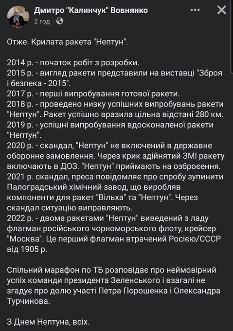 "А в апреле 2020 года на полигоне "Алибей" был испытан комплекс крылатых ракет наземного базирования - теперь уже знаменитый "Нептун". В результате все надводные мишени были поражены".