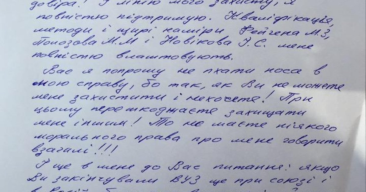 "Если меня не будут устраивать мои адвокаты, я их уволю. Но у меня к моим защитникам полное доверие. И линию моей защиты я полностью поддерживаю", - сказано в нем.