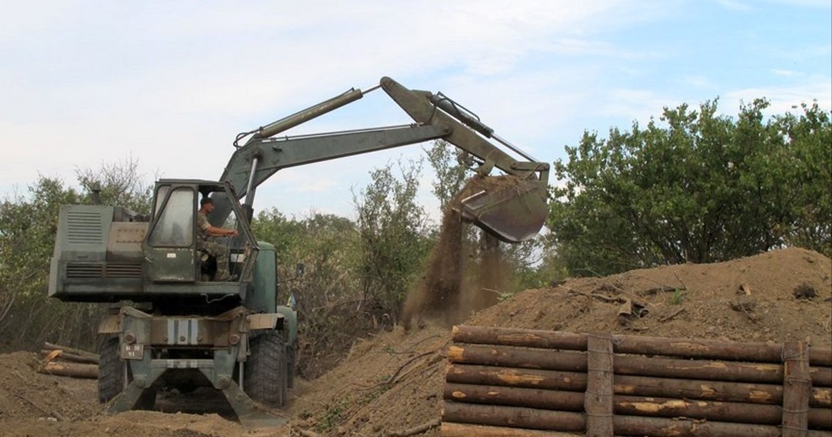 "Продолжаем строительство новых защитных сооружений, укрепляем все линии обороны. Только тяжелая техника постоянно работает, более ста единиц", - написал он.