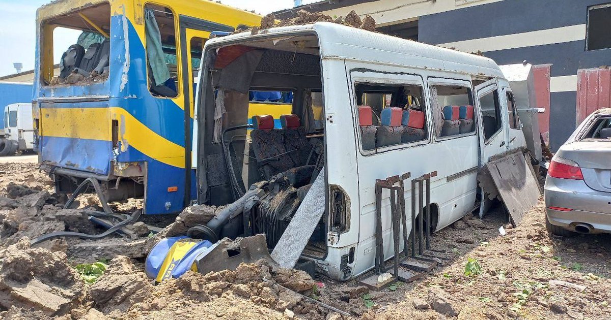 В одном из районов два частных дома разрушены практически до основания. Взрывной волной и обломками в близлежащих домах повреждены окна и кровля. Также ракета попала на территорию частного предприятия - там повреждения получил автопарк, а в гараже вылетели окна.