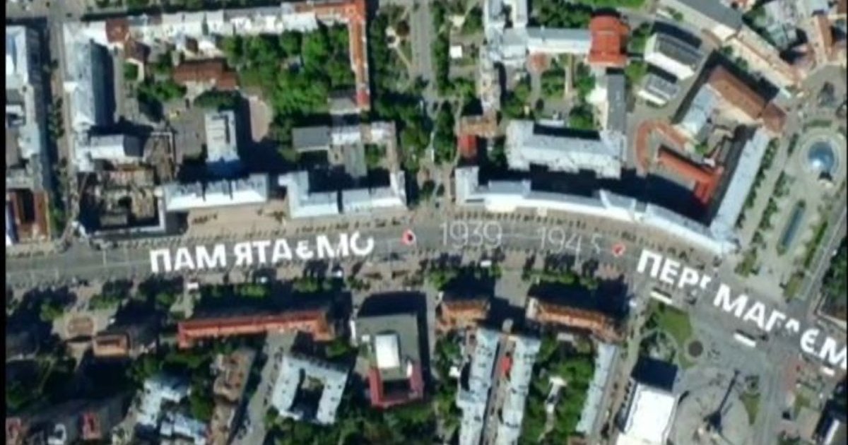 В честь 70-той годовщины Победы над нацизмом на главной улице украинской столицы – Крещатике - был проведен флэшмоб, участники которого выкладывали вдоль всей центральной улицы надпись "Пам'ятаємо-1939-1945-Перемагаємо".