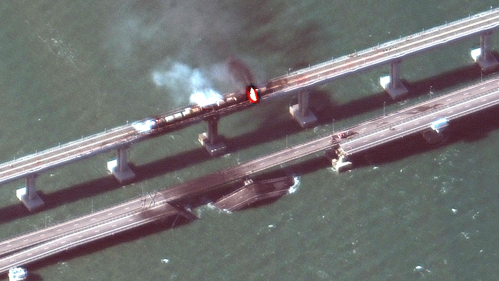 Утром 8 октября на Крымском мосту пылал сильный пожар. Движение по мосту перекрыли, но впоследствии возобновили.