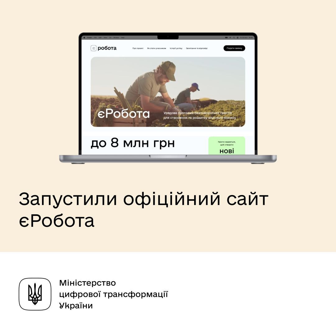 Министерство цифровой трансформации объявило о запуске сайта для программы финансовой поддержки предпринимателей "єРобота".